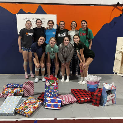 Wrapping gifts for a needy family